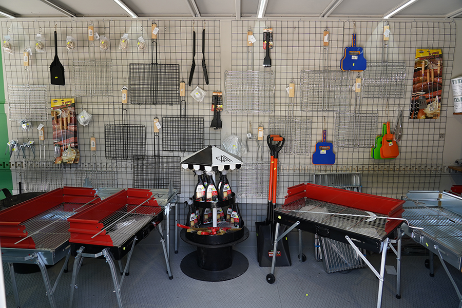 Επιπλέον τα τελευταία χρόνια στις εγκαταστάσεις μας θα βρείτε BBQ corner με προϊόντα για το ψήσιμο όπως ψησταριές, σχάρες, σούβλες, ηλεκτρικά μοτέρ και ότι άλλο χρειαστείτε.